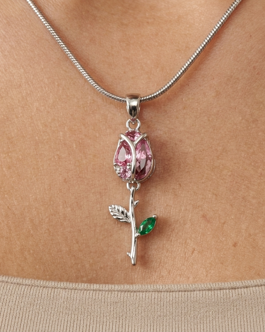 Collar Tulipán rosa plateado