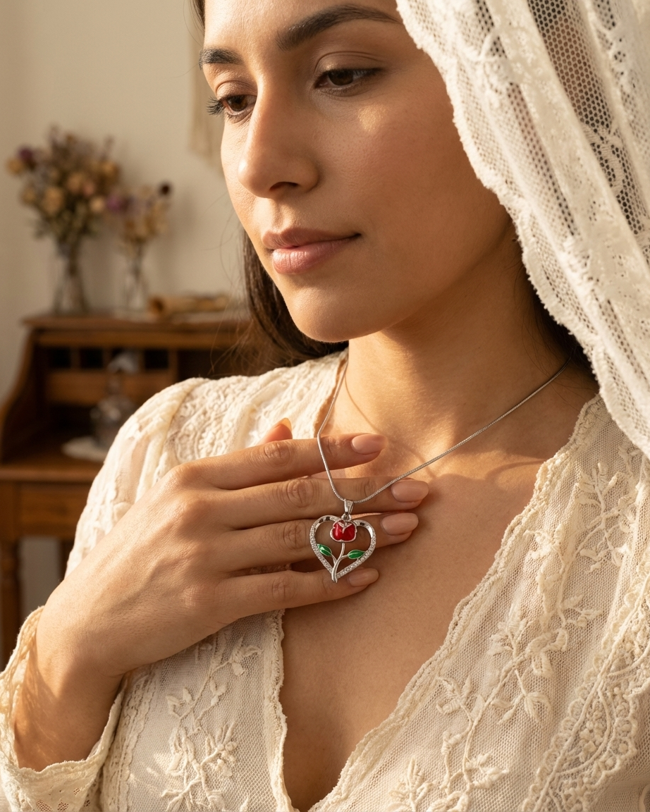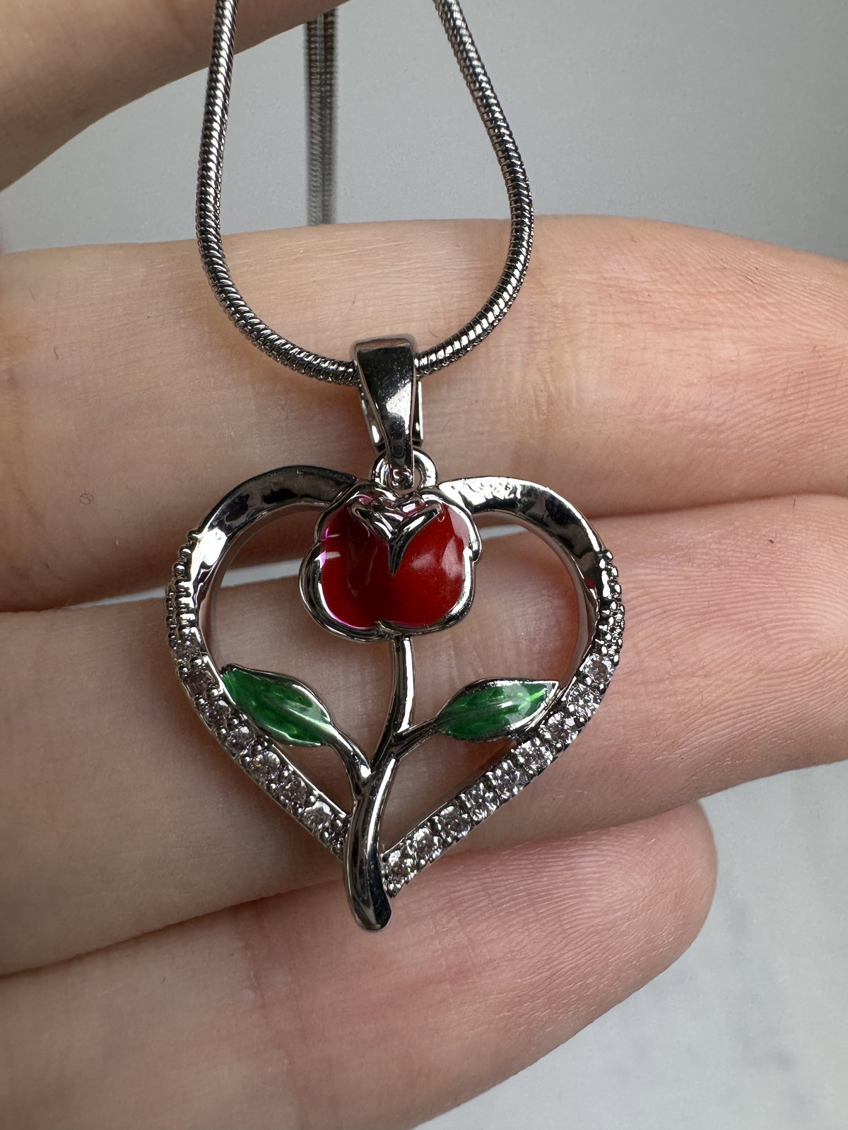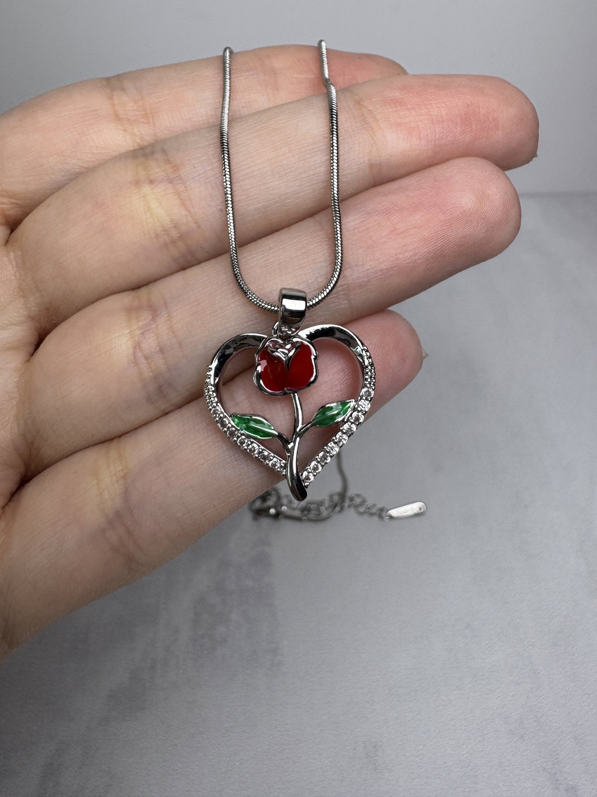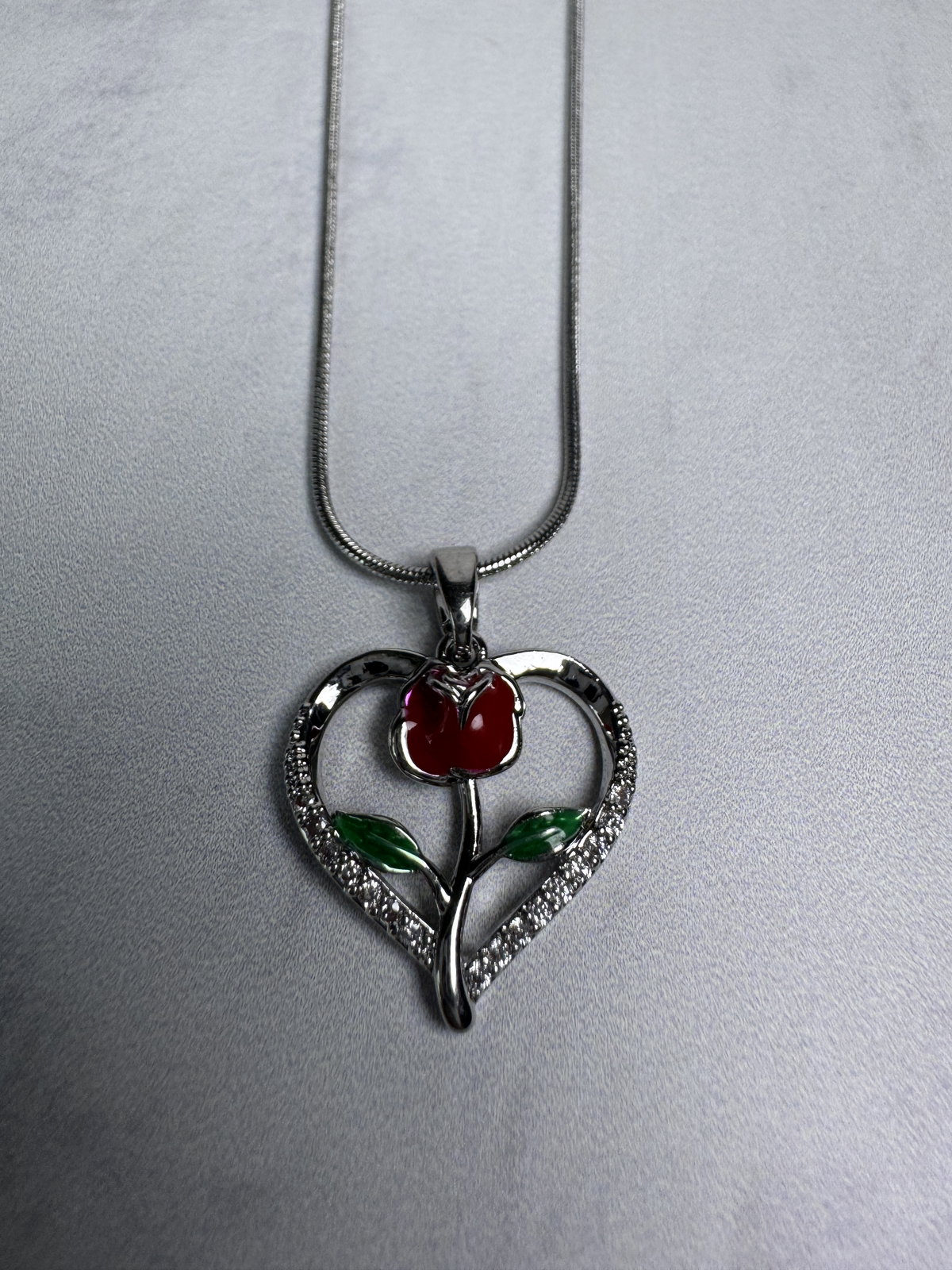 Collar con dije con micro pave crista de cobre baña en acero y cadena cola de raton de acero quirurgico