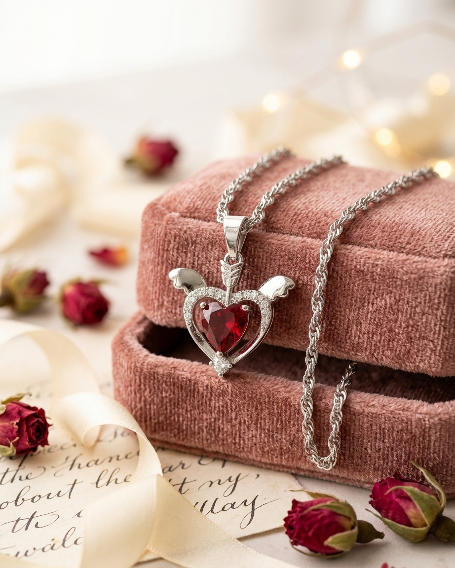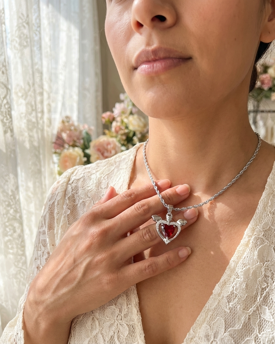 Collar con dije con micro pave crista de cobre bañado en acero y cadena de acero quirurgico
