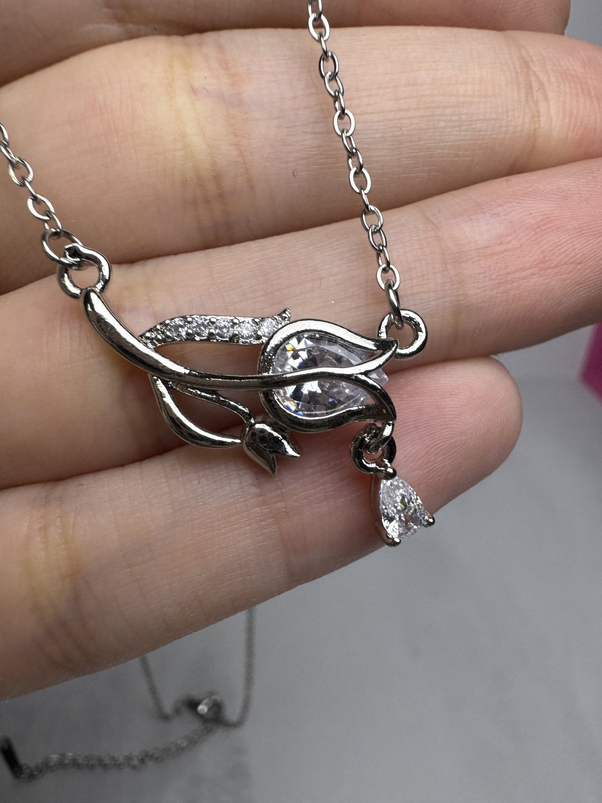 Collar con dije con cubic cristal y micro pave cristal de cobre y cadena de acero quirurgico