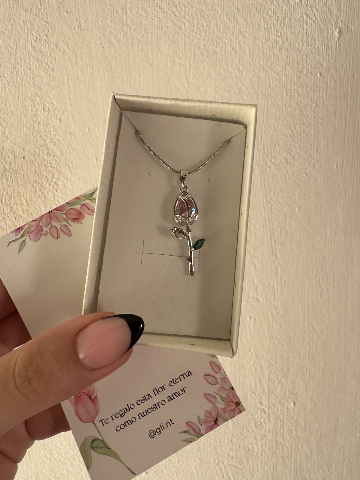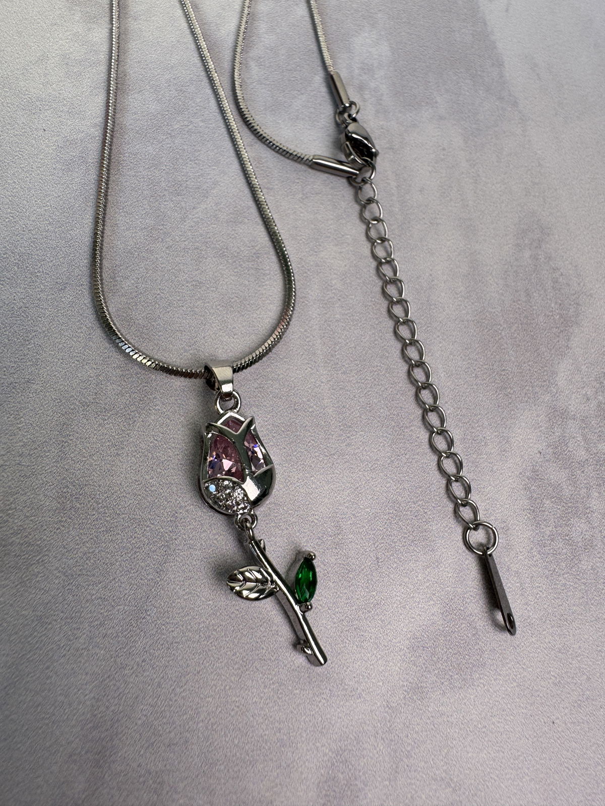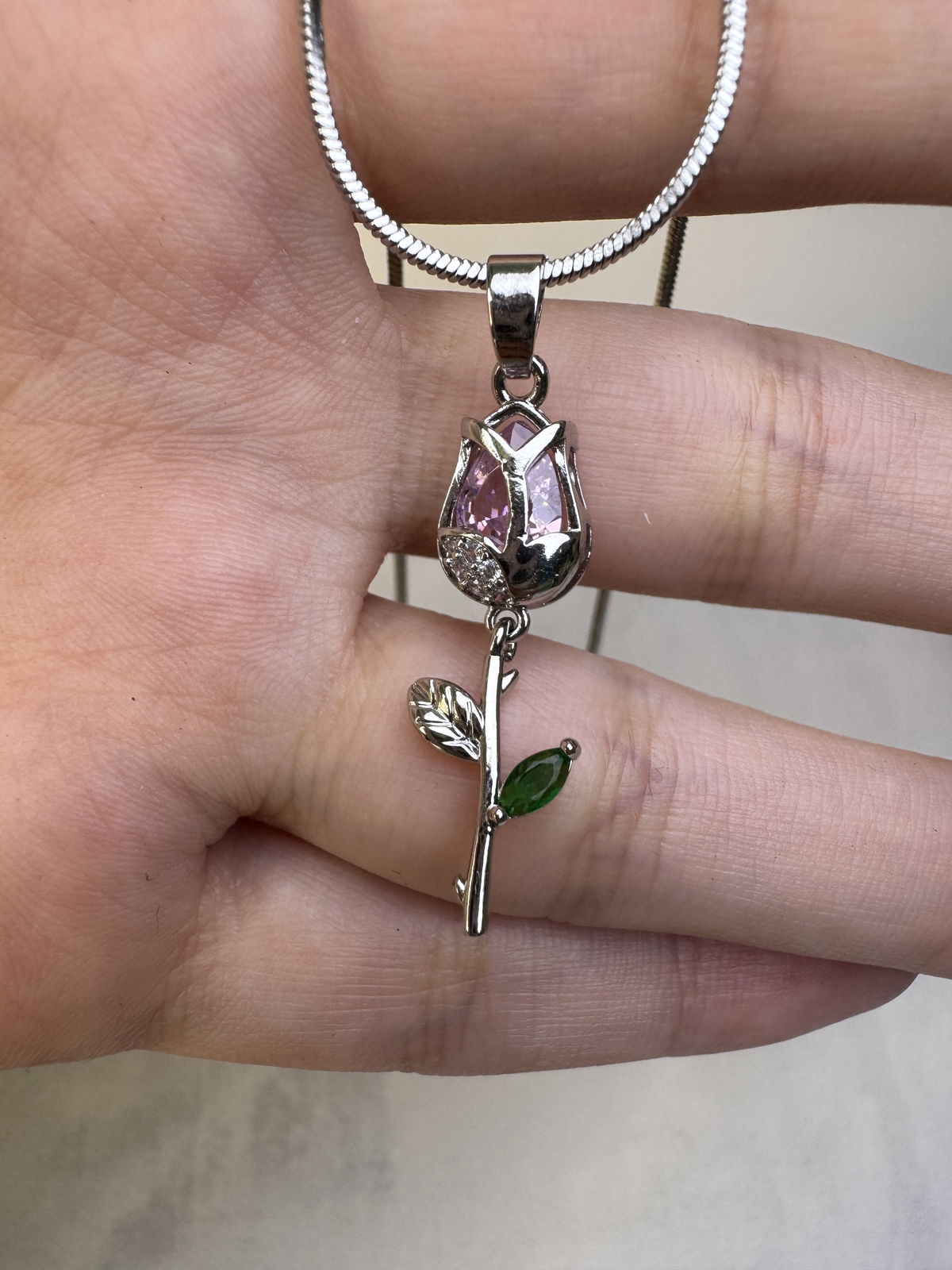 Collar Tulipán rosa plateado