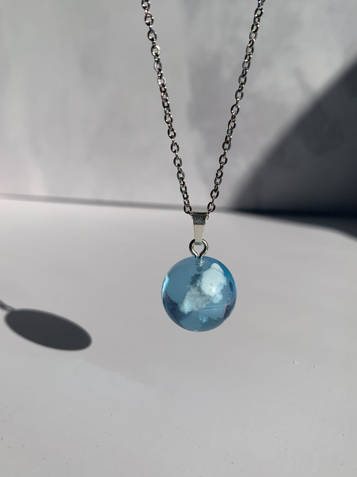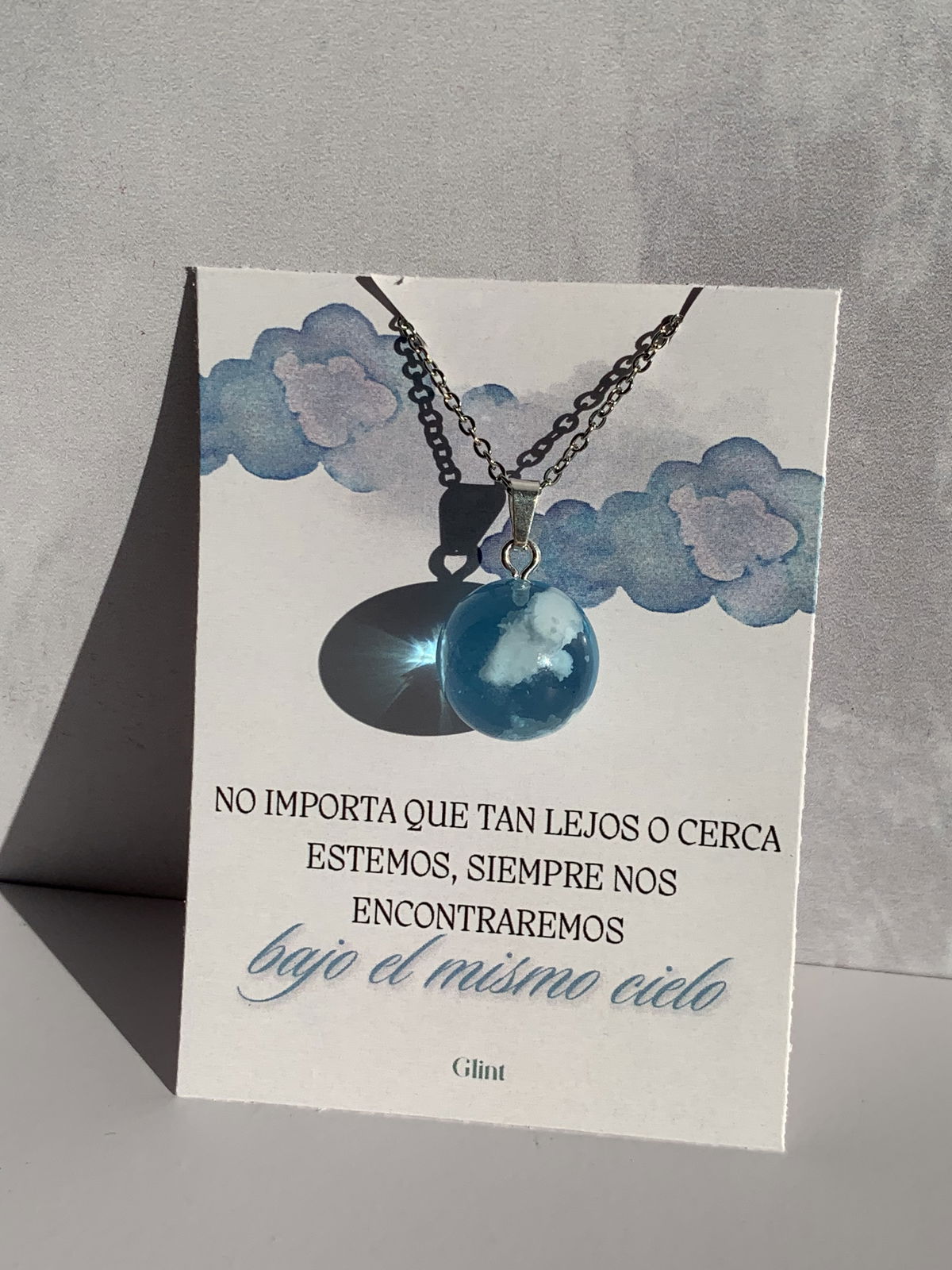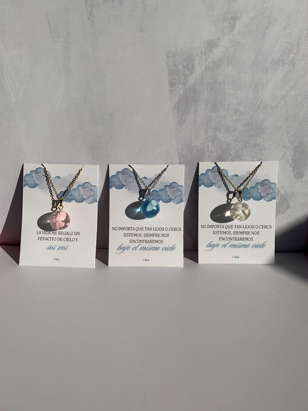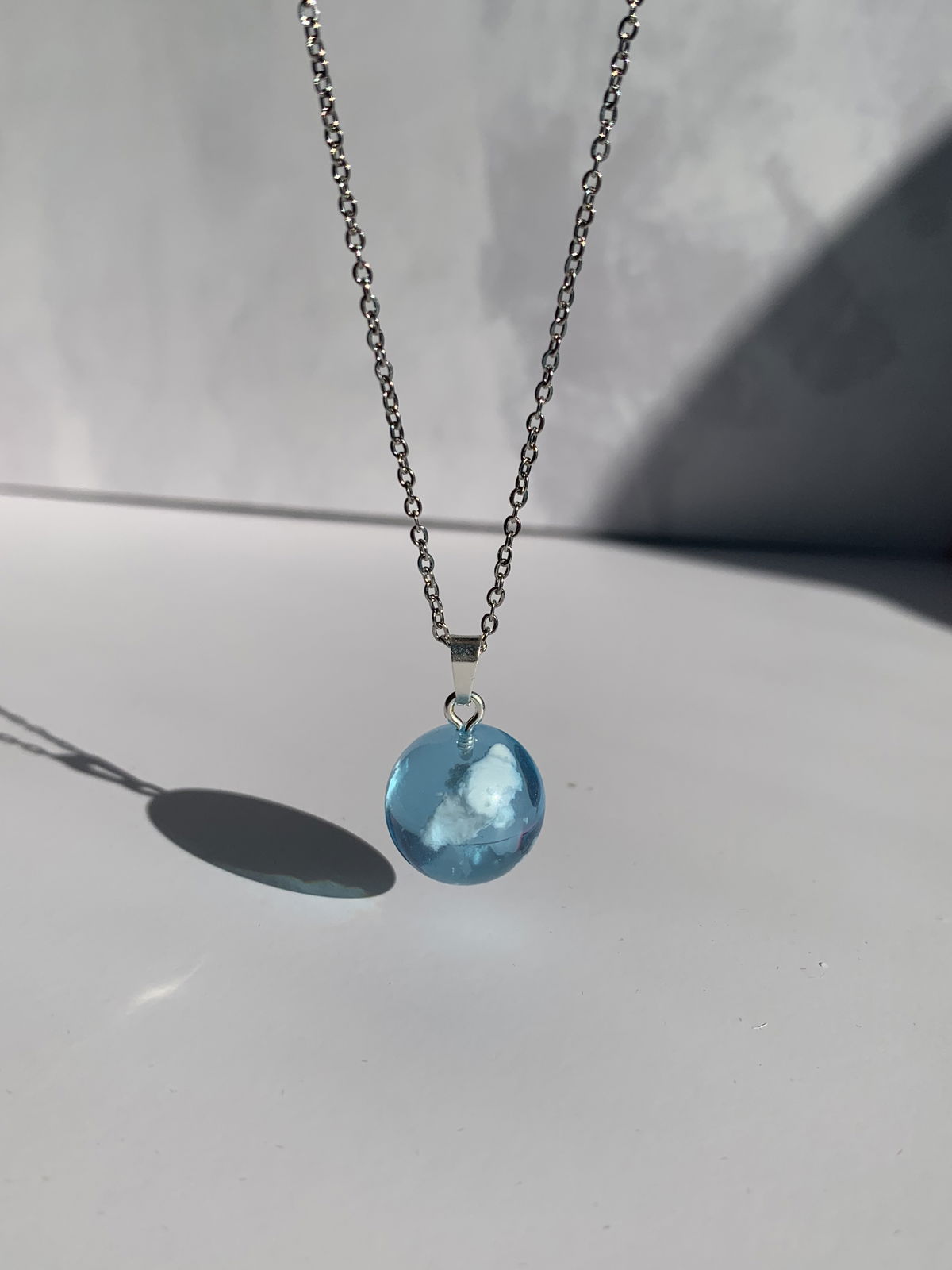 Collar con dije de resina, acero blanco y cadena de acero quirurgico