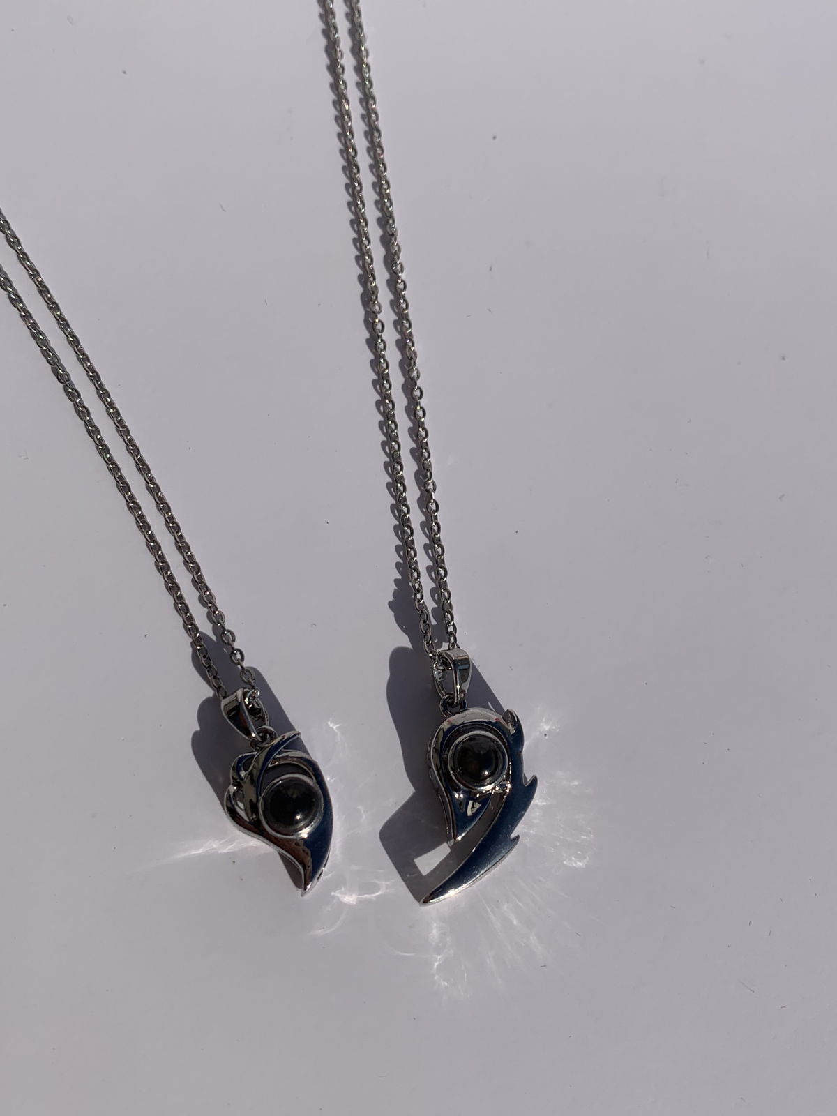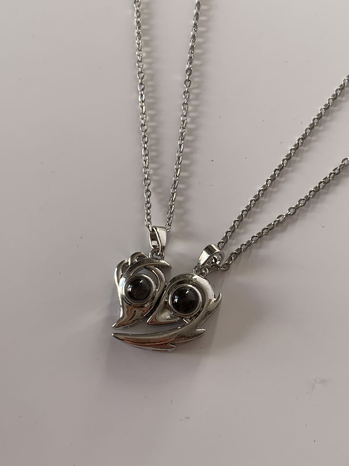 2 collares con dijes de bronce laminado e imantados y cadenas de acero quirurgico, ideales para compartir