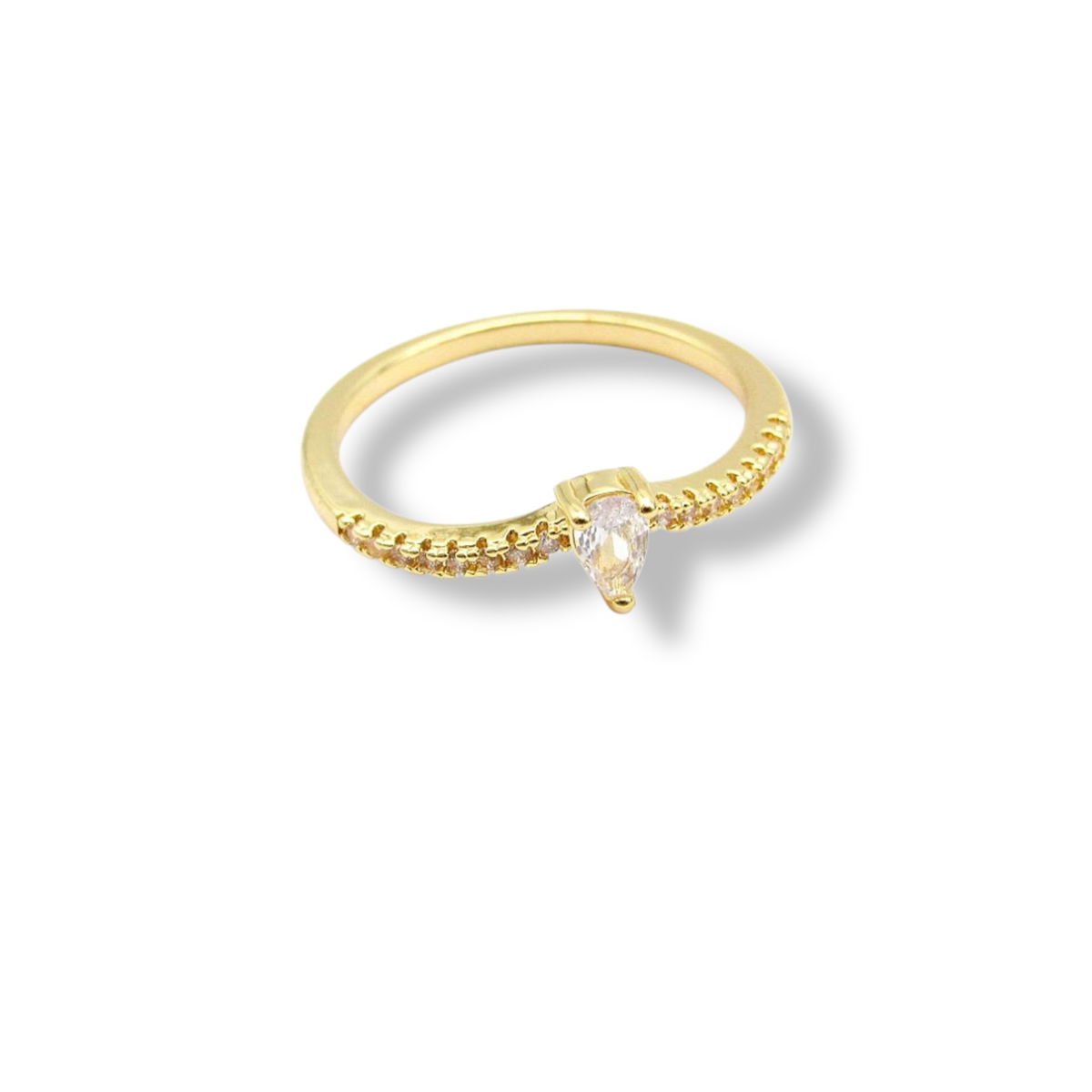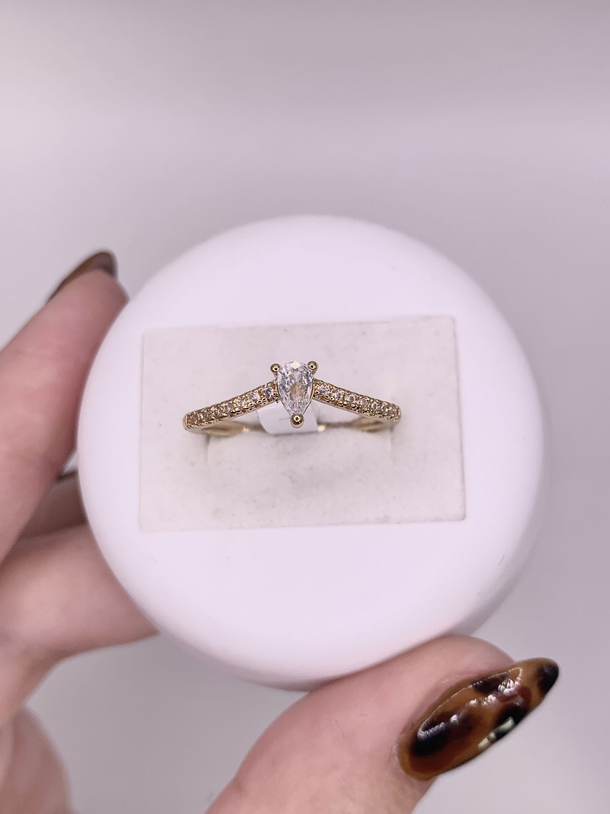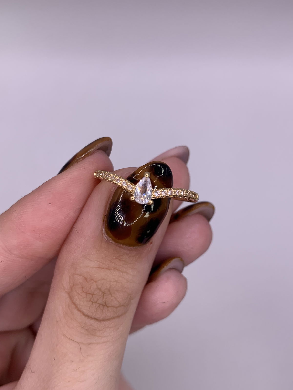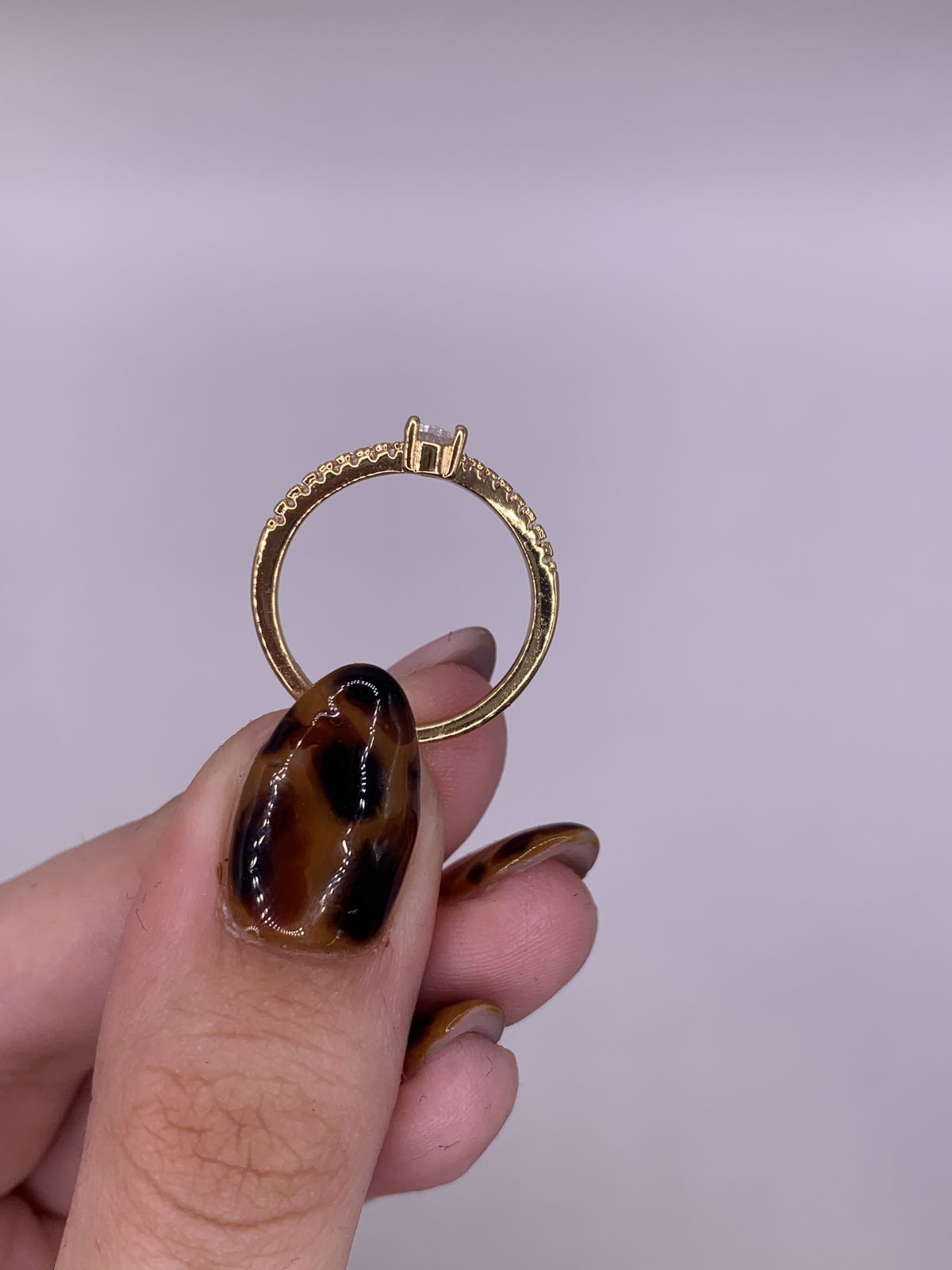Anillo de acero dorado con cubic cristal y micro pave cristal