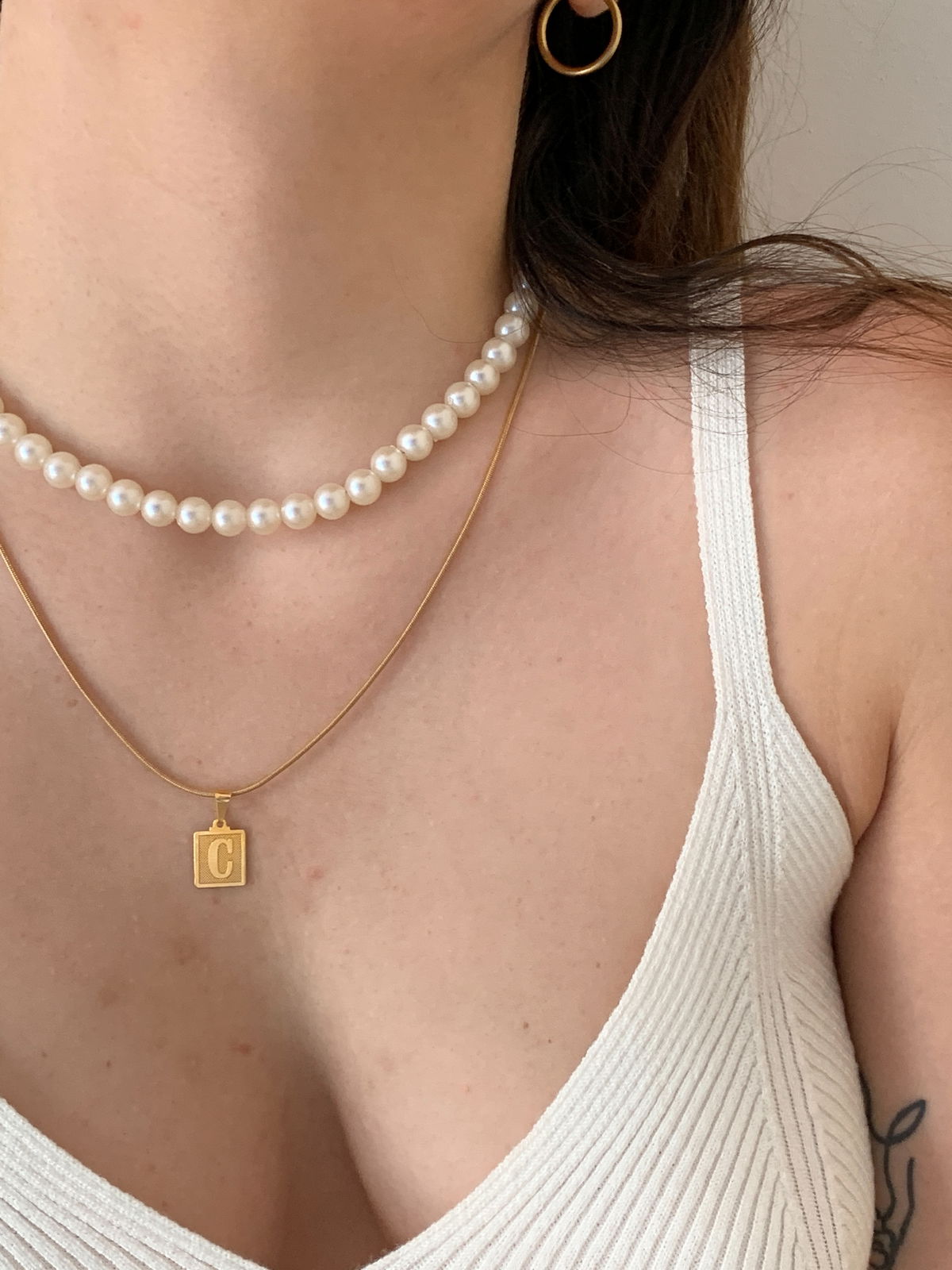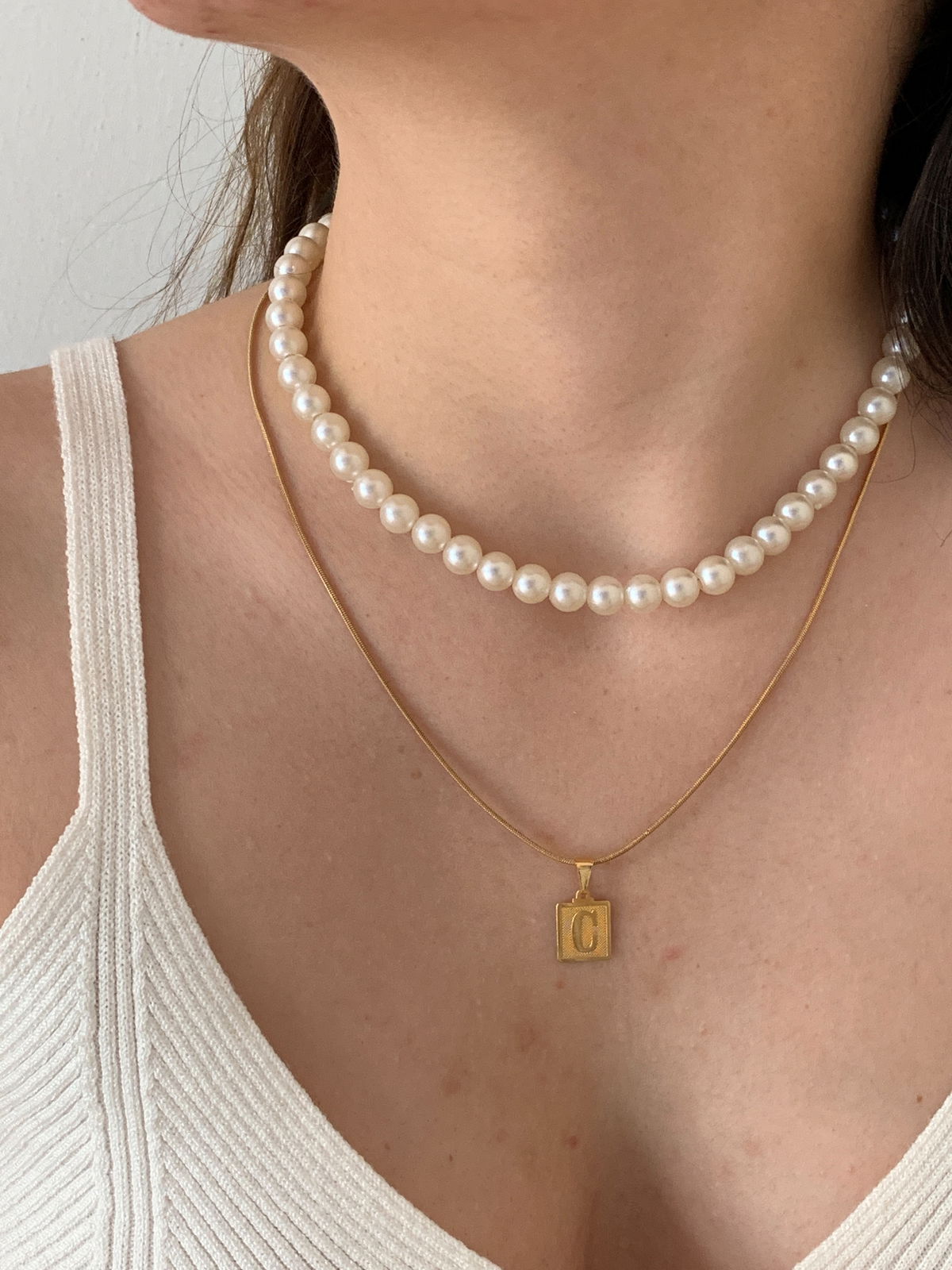 Collar/Choker hecho a mano con perlas color crema y fornituras de acero quirúrgico