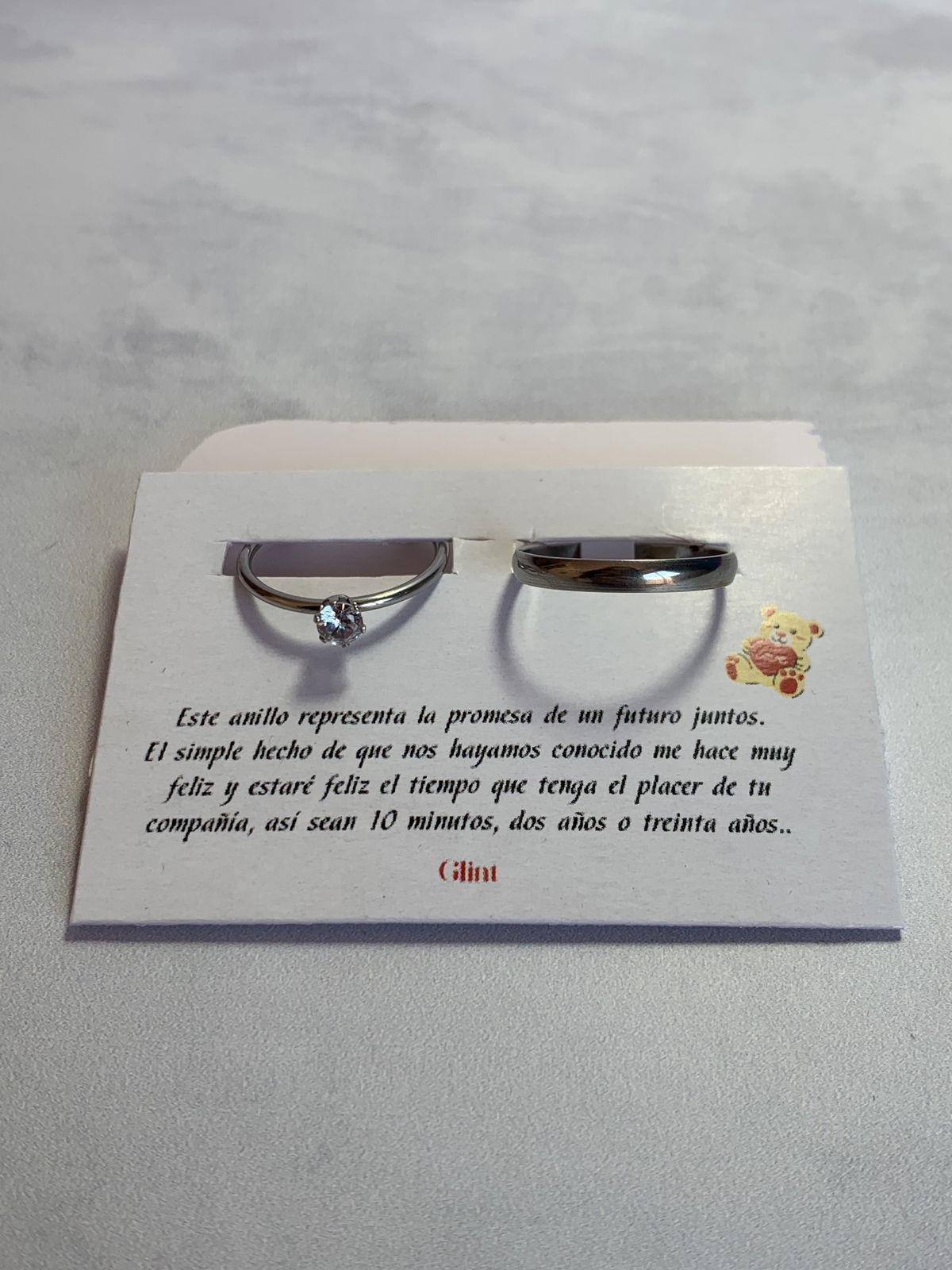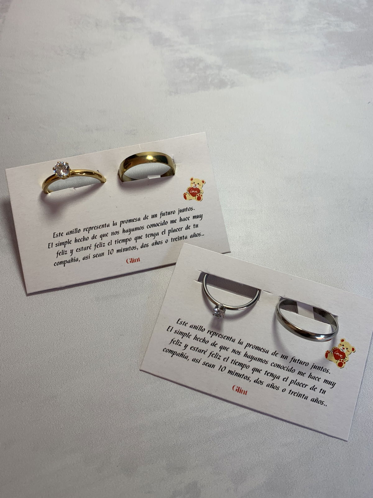 Si lo agregas tus anillos se van a ir con el packaging original mas su tarjeta, recomendamos que hayas elegido dos anillos