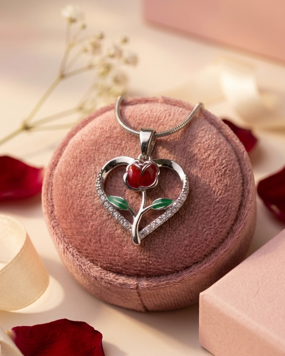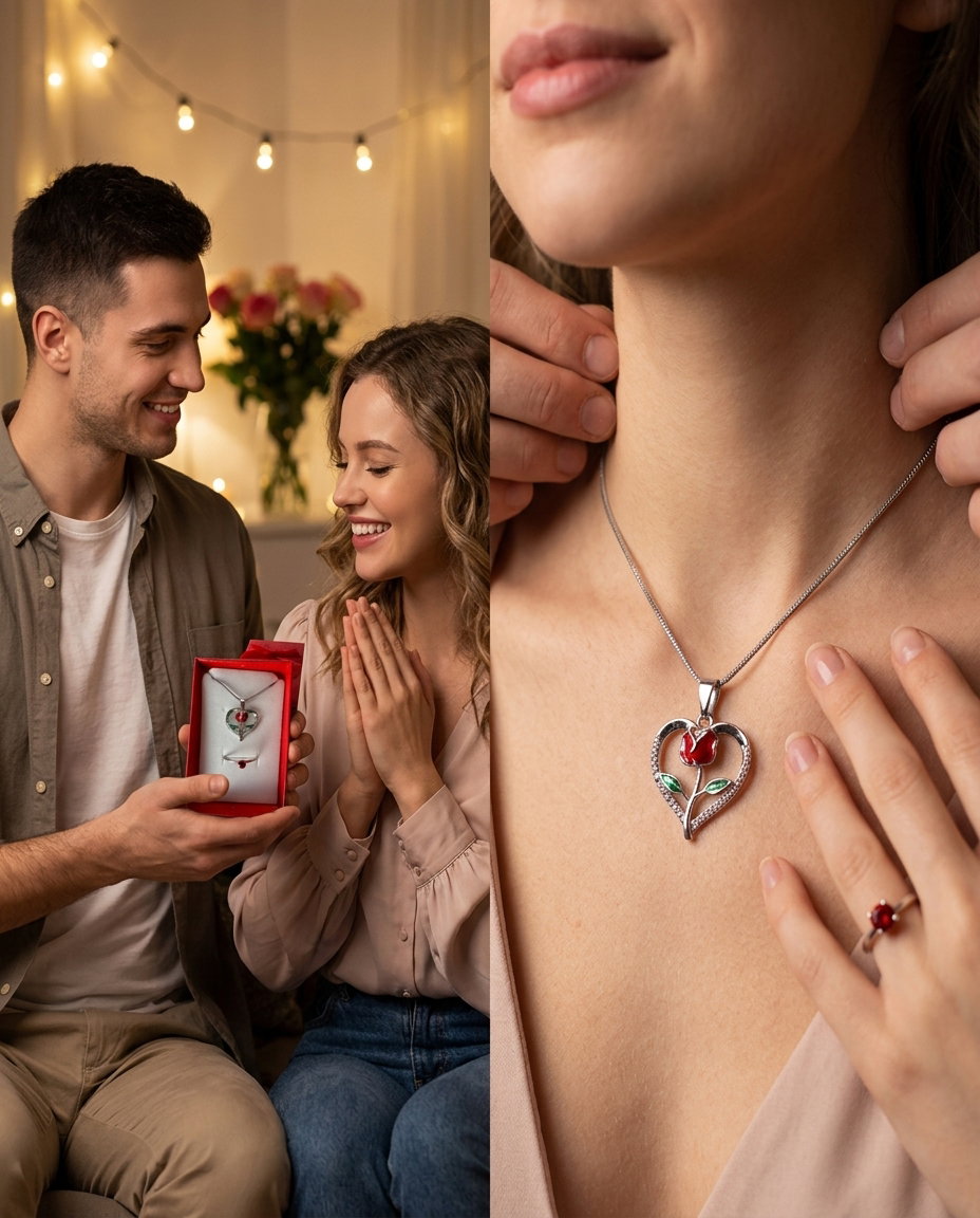 Este set incluye un anillo y un collar mas un estuche de regalo, el color del estuche es aleatorio