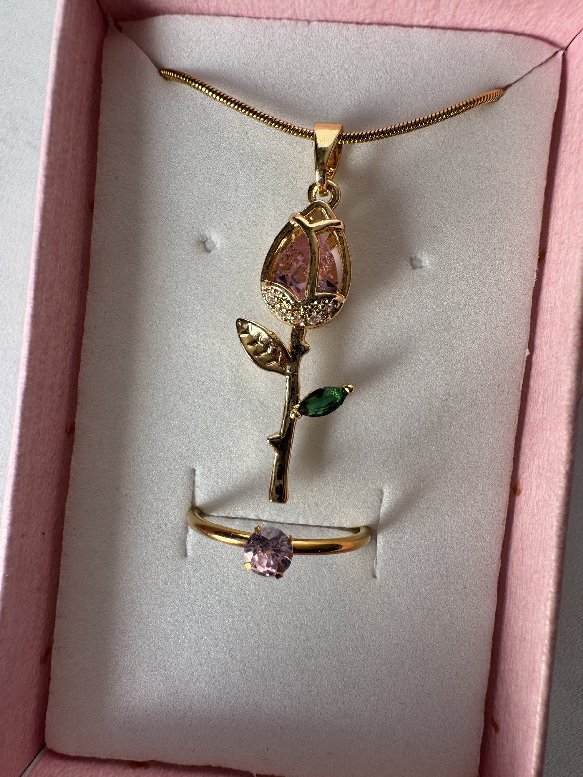 Set: Anillo promesa + Collar Tulipan Rosa Dorado